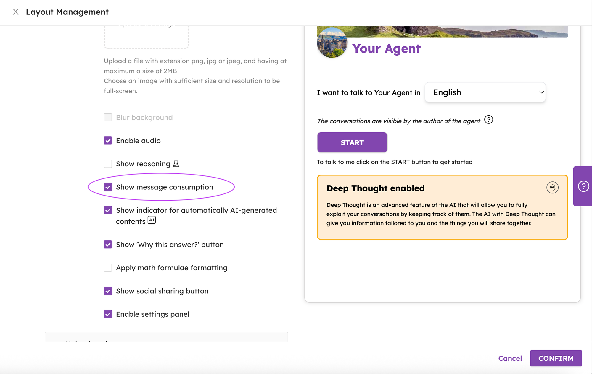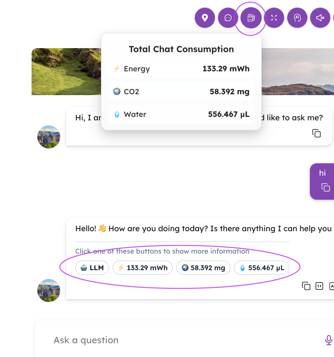 As an author, you can now choose to show to your users the data of the carbon footprint of messages and chats. This will allow your users to be aware of the environmental impact of their interaction with AI in real time as they chat.